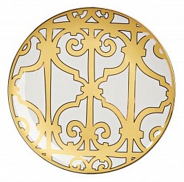 Великолепная тарелка из костяного фарфора высокого качества предназначена для закусок, салатов и вторых блюд. Тарелка декорирована оригинальным геометрическим орнаментом в стиле модерн moderne и украшена золотым кантом. Сочетание золотистого и белого цветов придают ей торжественный и благородный вид. Тарелка идеально подходит для праздничной сервировки. Вы можете приобрести ее отдельно или в комплекте с другими изделиями серии «Marbella».