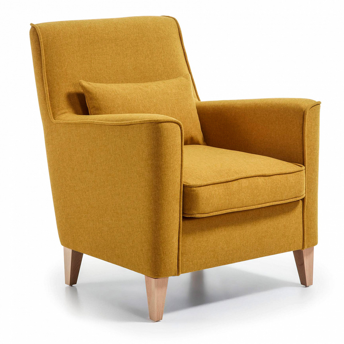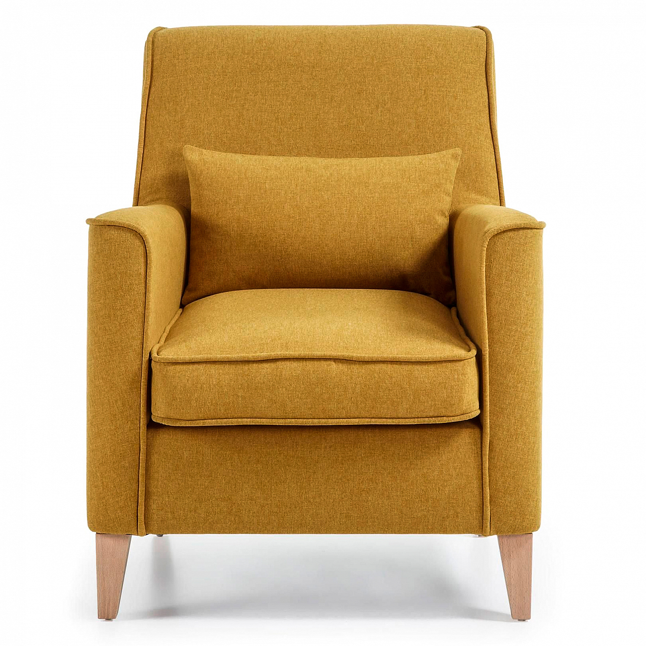Кресло, обтянутое тканью, с антискользящим тефлоновым покрытием Varese. Ножки из натурального букового дерева. Подушка включена. Кресло Fyno горчичное.