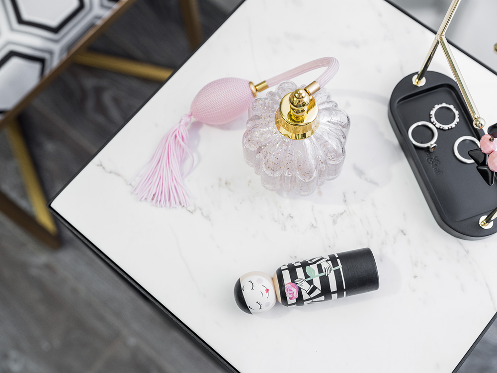 Мини столик с мраморной столешницей, черный